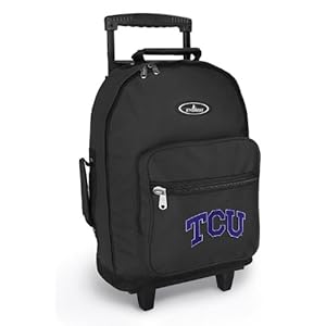 | Access the most advanced RSS tools and use them to your advantage. | 2013-03-02 01:23:27.774508-05 Category: Sports & Outdoors Vendor: Super Strong 600 Denier Nylon Two Exterior Pockets and a Mesh Water Bottle Pocket, Durable 600 Denier fabric Padded Back and We  Product Description : Our wheeled TCU Logo backpack or rolling carry-on bag features a sturdy telescopic handle, a double wheel base, two exterior pockets, a mesh water bottle pocket, padded shoulder straps, and two optional handles. The main compartment opens super-wide for easy accessibility. Made of durable 600 Denier Fabric and measuring 13" x 17" x 6", this is a large easy-to-use backpack with wheels for use as a rolling school bag, or travel trolley bag. Find out more |